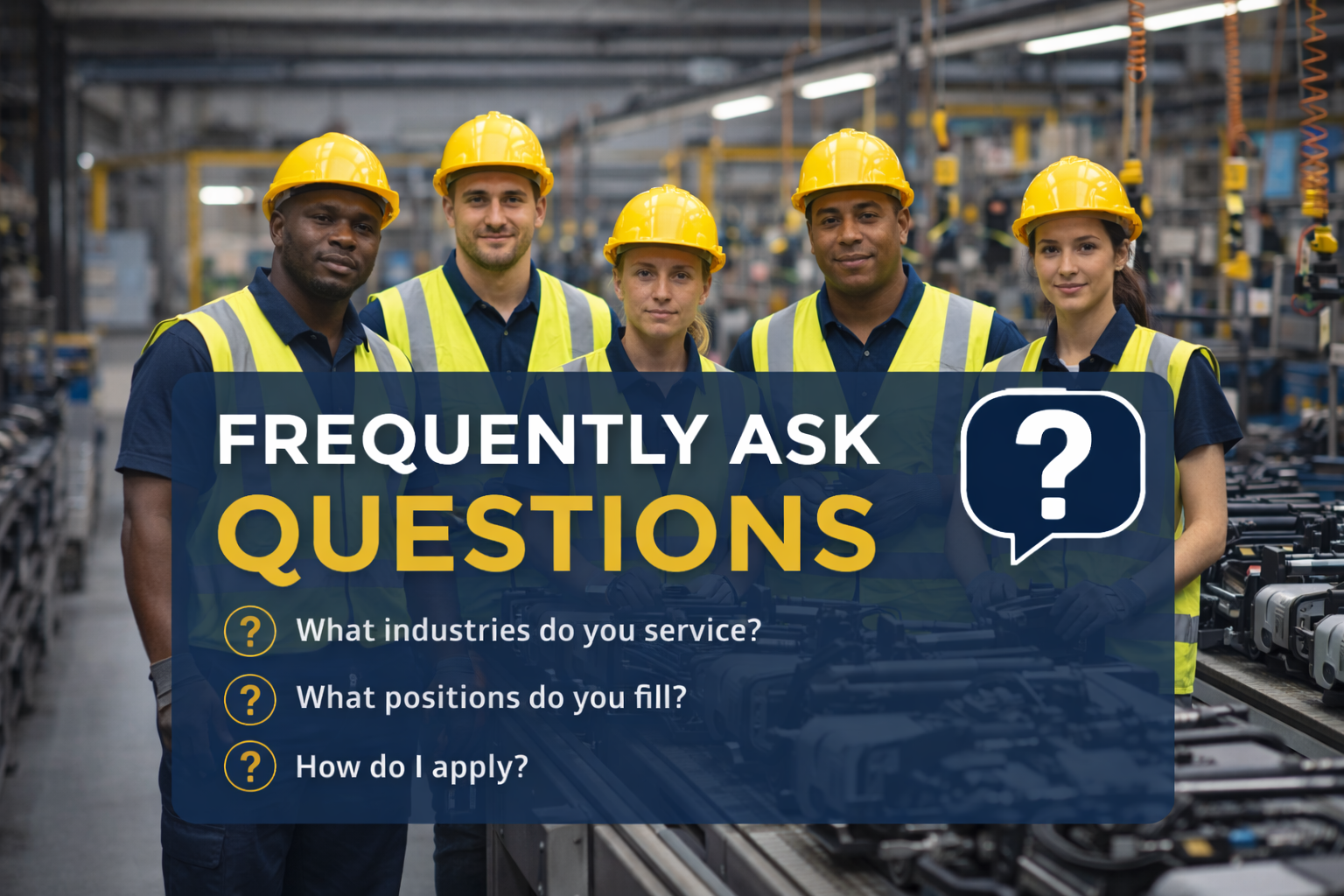 General labor, warehouse/distribution, manufacturing/production support.